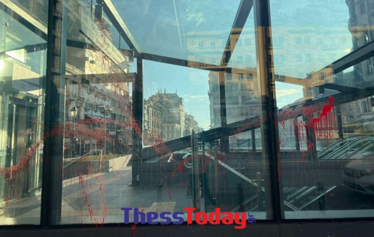 Πέταξαν κόκκινες μπογιές πάνω στις τζαμαρίες του σταθμού Βενιζέλου, στο κέντρο της πόλης ενώ έγραψαν συνθήματα στους τοίχους του σταθμού «Δημοκρατία».