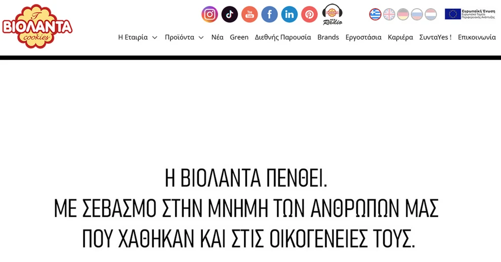 Στην επίσημη ιστοσελίδα της εταιρείας αναγράφεται αυτό το μήνυμα: «Η Βιολάντα πενθεί. Με σεβασμό στην μνήμη των ανθρώπων μας που χάθηκαν και στις οικογένειές τους».