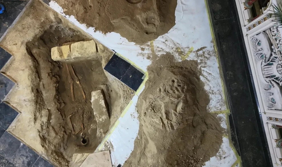 Σε αυτό το σημείο κλήθηκε ένας αρχαιολόγος, που ανακάλυψε τον σκελετό κάτω από την περιοχή όπου βρισκόταν το ιερό τραπέζι πριν από 200 χρόνια.