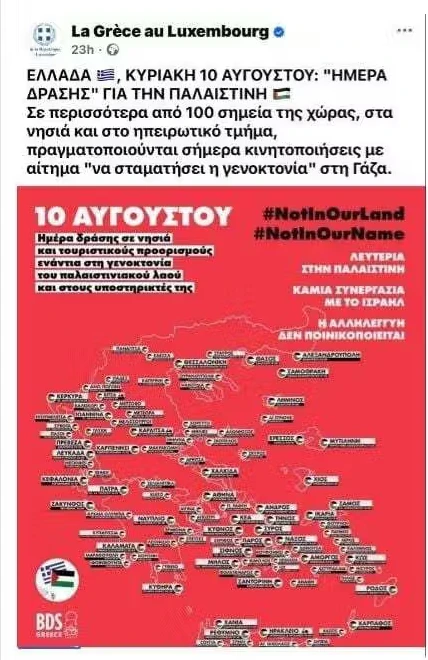 Ειδικότερα σε απάντηση της Εκπροσώπου του Υπουργείου Εξωτερικών, Λάνας Ζωχιού, σε ερώτηση δημοσιογράφου σχετικά με ανάρτηση στον επίσημο λογαριασμό Μέσου Κοινωνικής Δικτύωσης της Πρεσβείας της Ελλάδας στο Λουξεμβούργο, επισημαίνονται τα εξής: