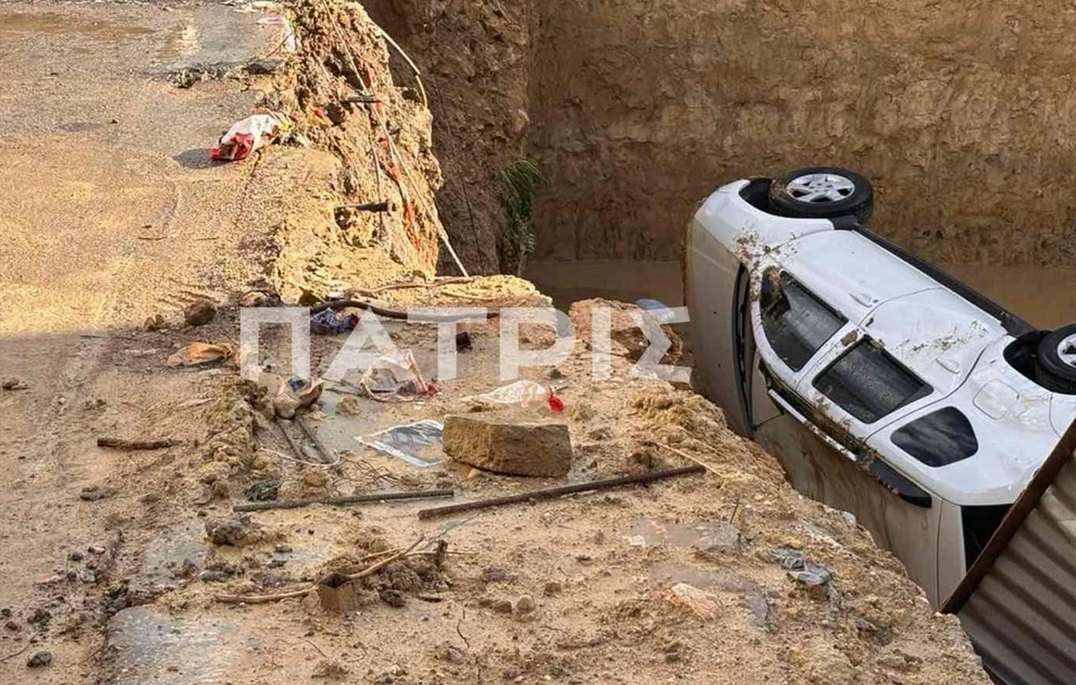 Το αυτοκίνητο που ήταν σταθμευμένο βρέθηκε σε οικόπεδο, σε βάθος τριών μέτρων.